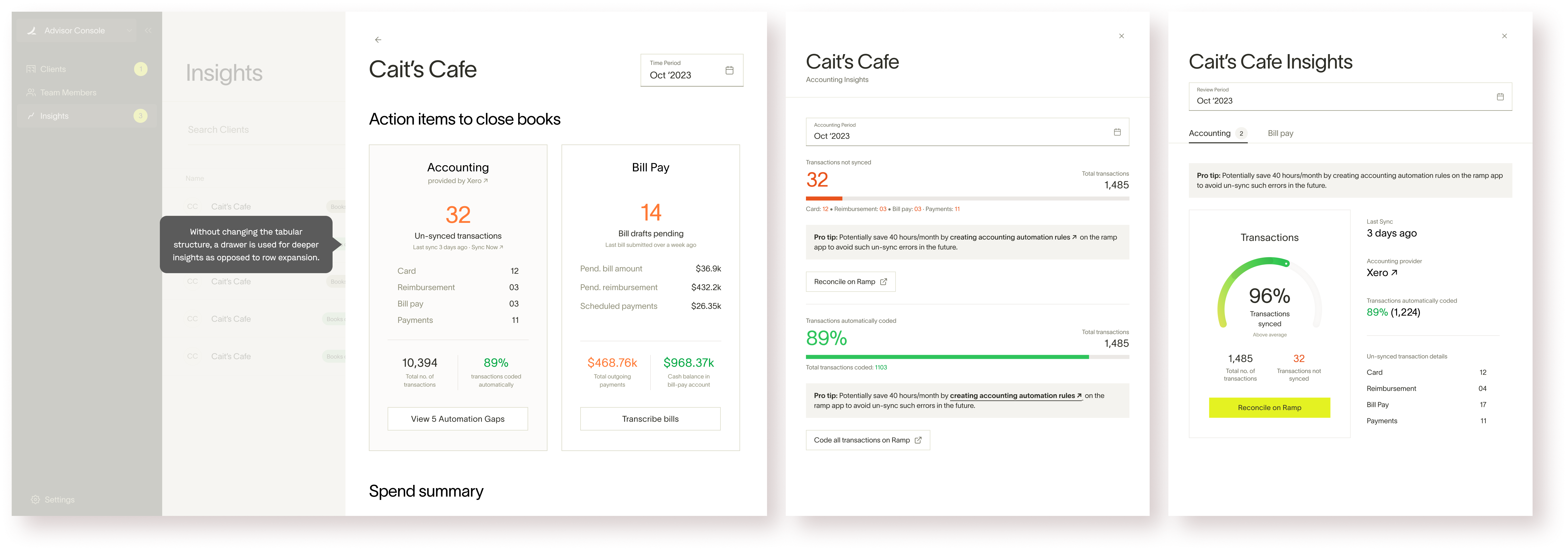 A set of relevant and actionable data-points from each client’s Ramp account, surfaced on the console.