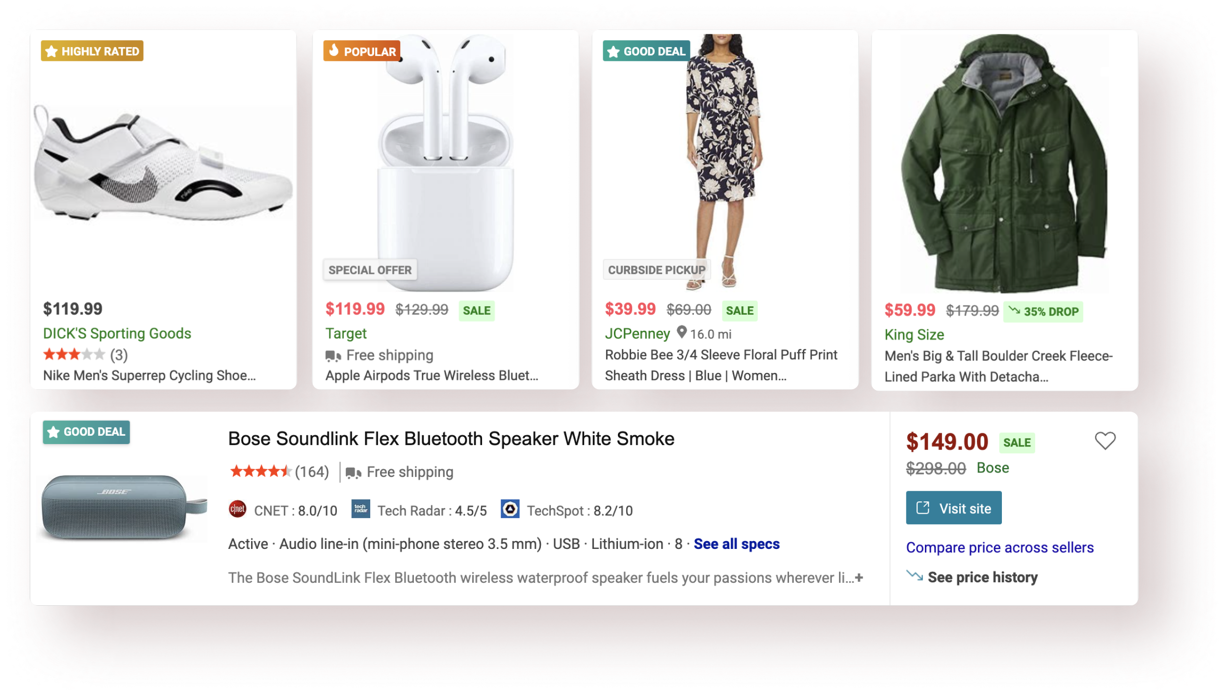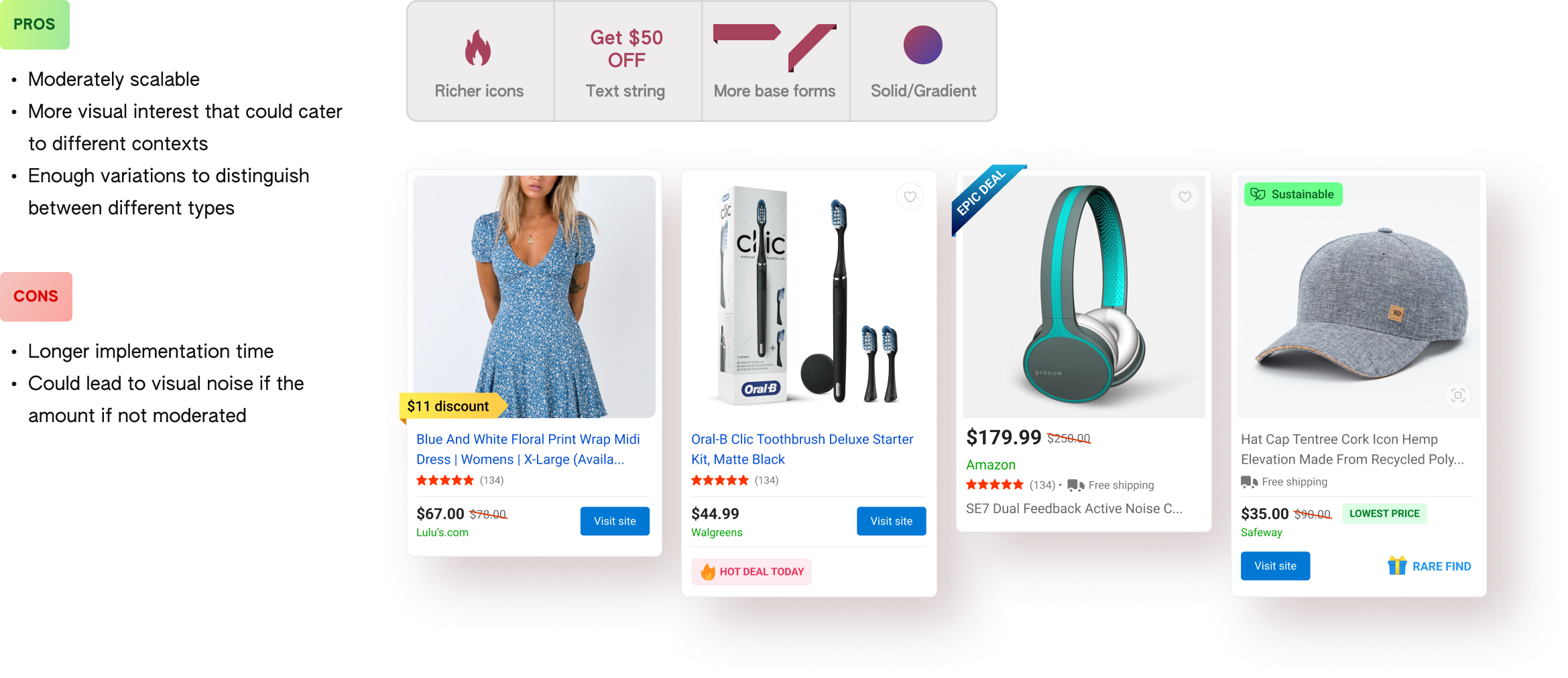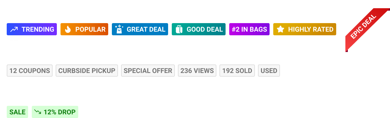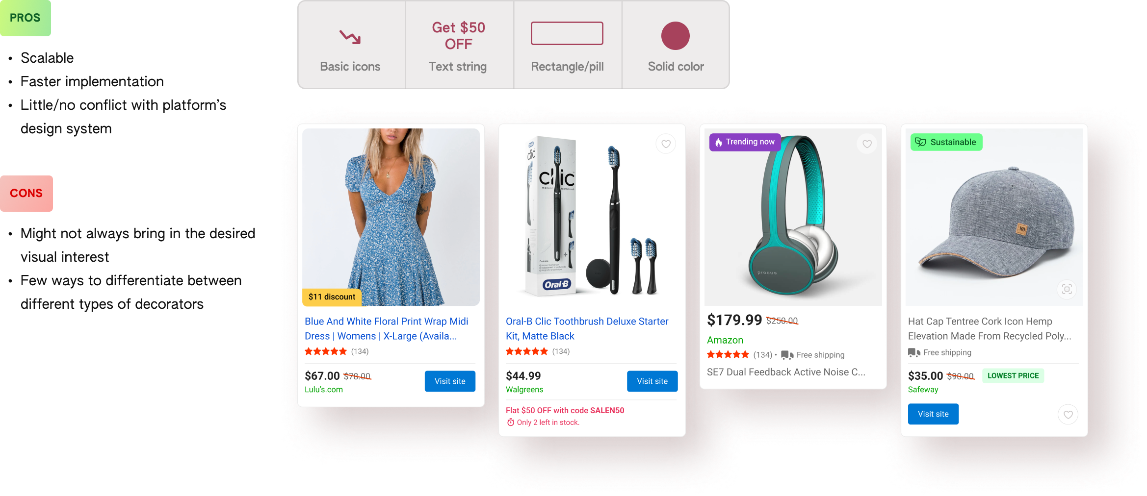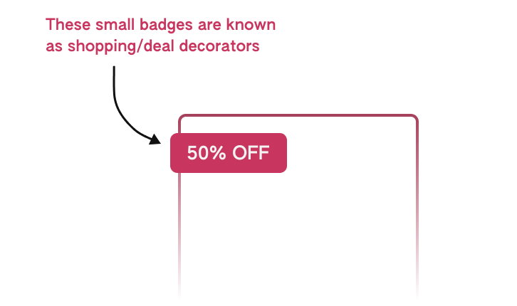 The Shopping team used to refer to the small deal badges on product cards as shopping/deal ‘decorators’ (as shown in the given image).