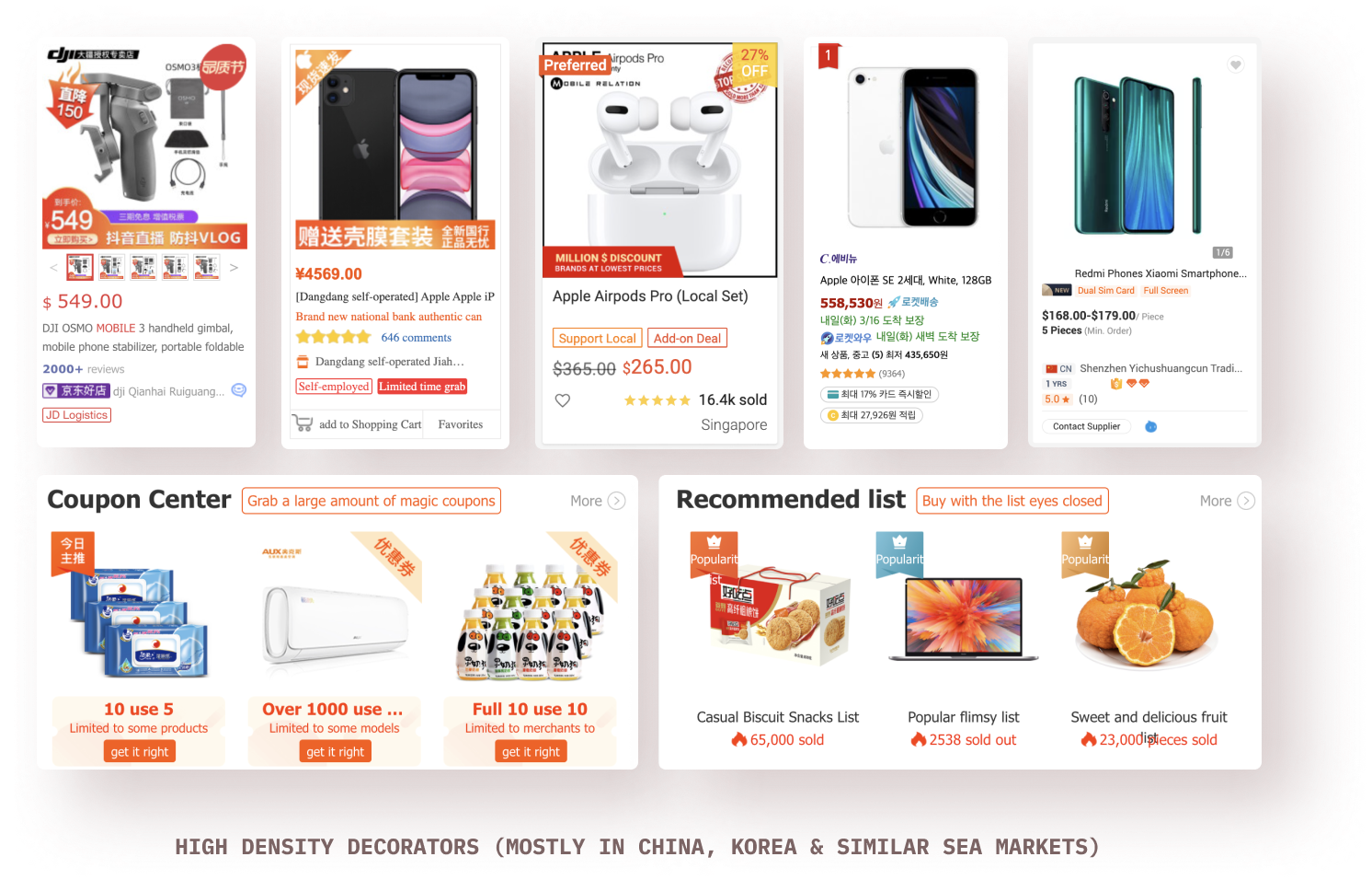 A few players in the Western markets have adopted the mid-high density approach (such as Wish.com and western counterparts of Asian platforms).