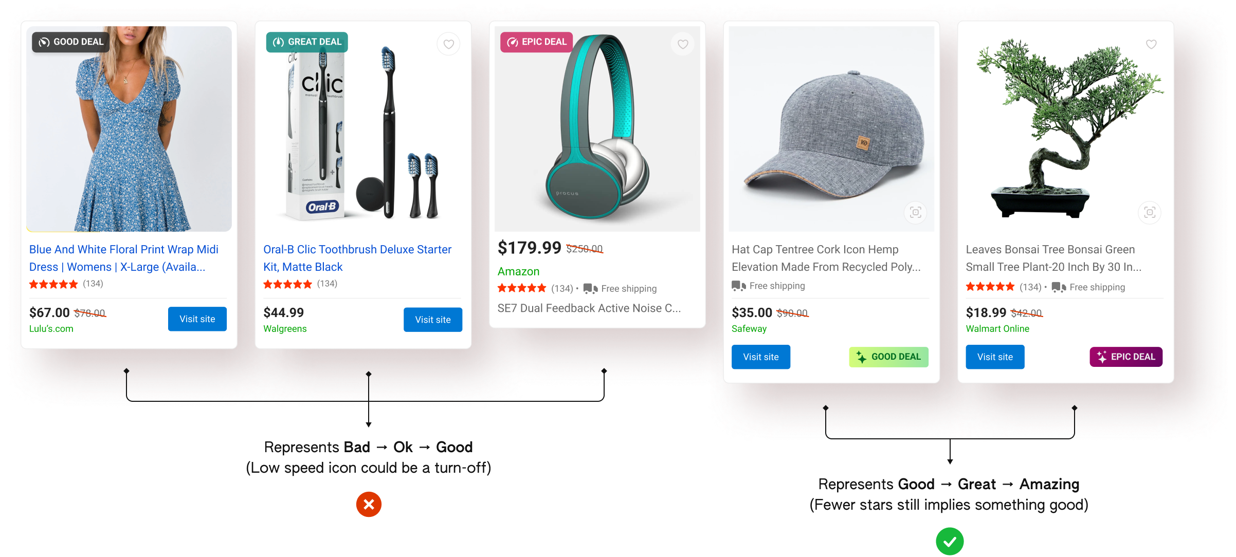 The idea is to show a quick view of not only the product, but also why a deal is Great or Epic.
