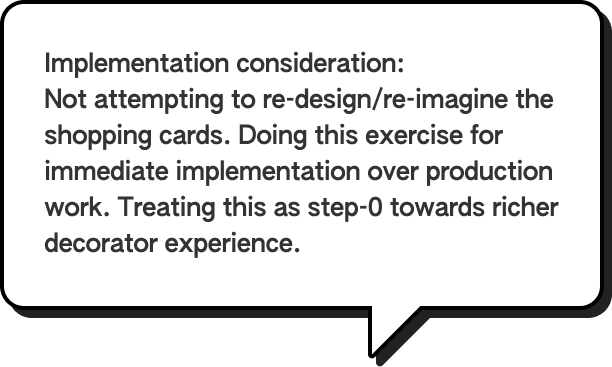 Shopping decorators are modular and it’s hard to design them for multiple touch-points and products. Also, the frequency of new decorator creation is reducing and hence coming up with a framework that’d stand the test of time was challenging.
