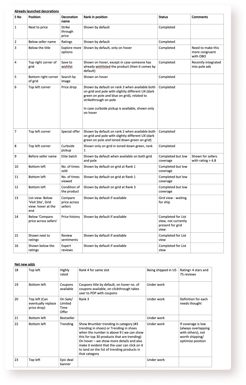 The user feedback on the priority of decorators was a mixed bag. There was some published secondary data around the ranking of decorators from Google. And then there were some internal team biases as well. Making sense of all these and coming up with a system for the same was hard.