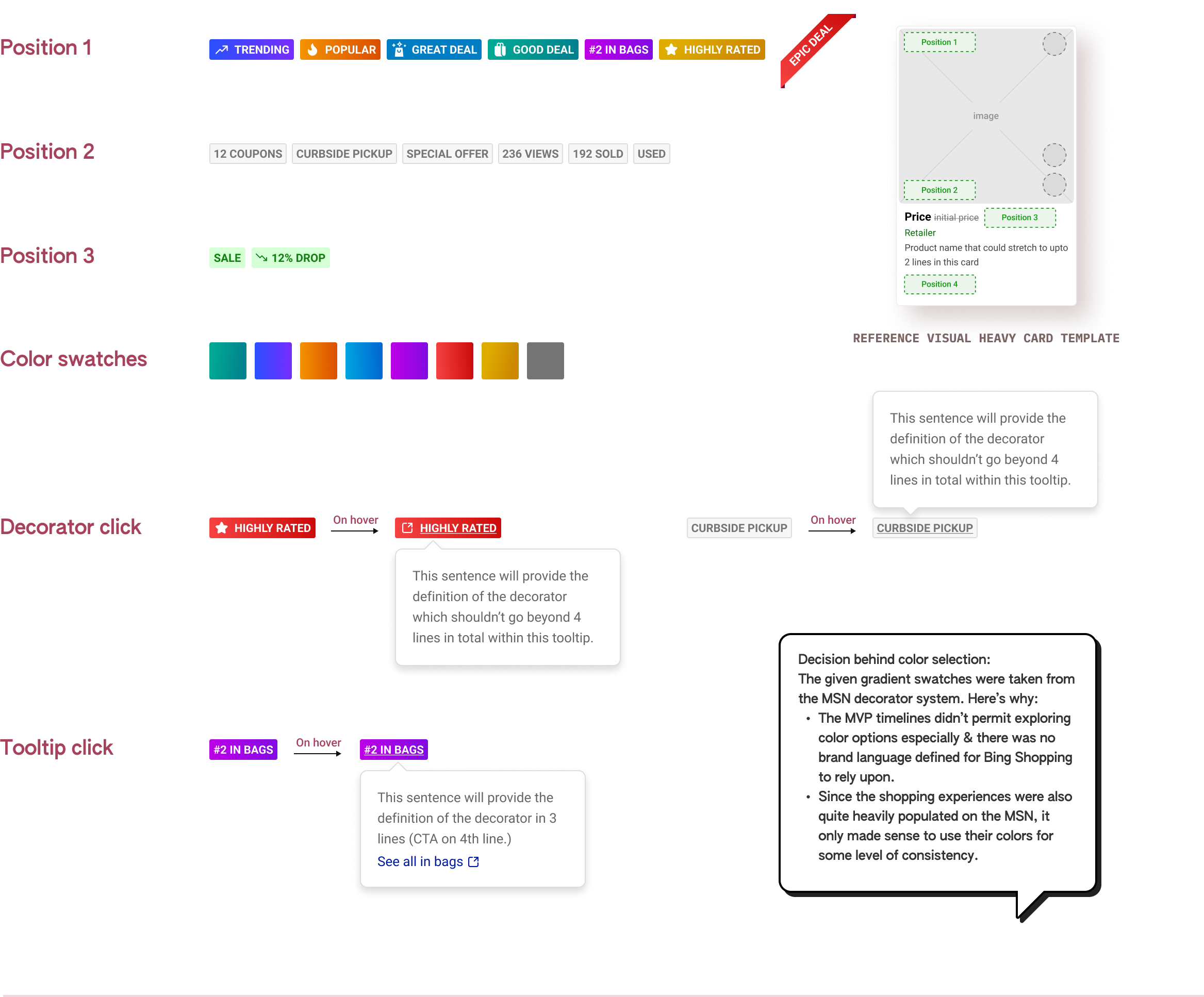 After going through this entire process, I came up with a UI library of decorators for the MVP stage. These were made to be implemented quickly on Bing Shopping vertical to test out and gather some usage data.