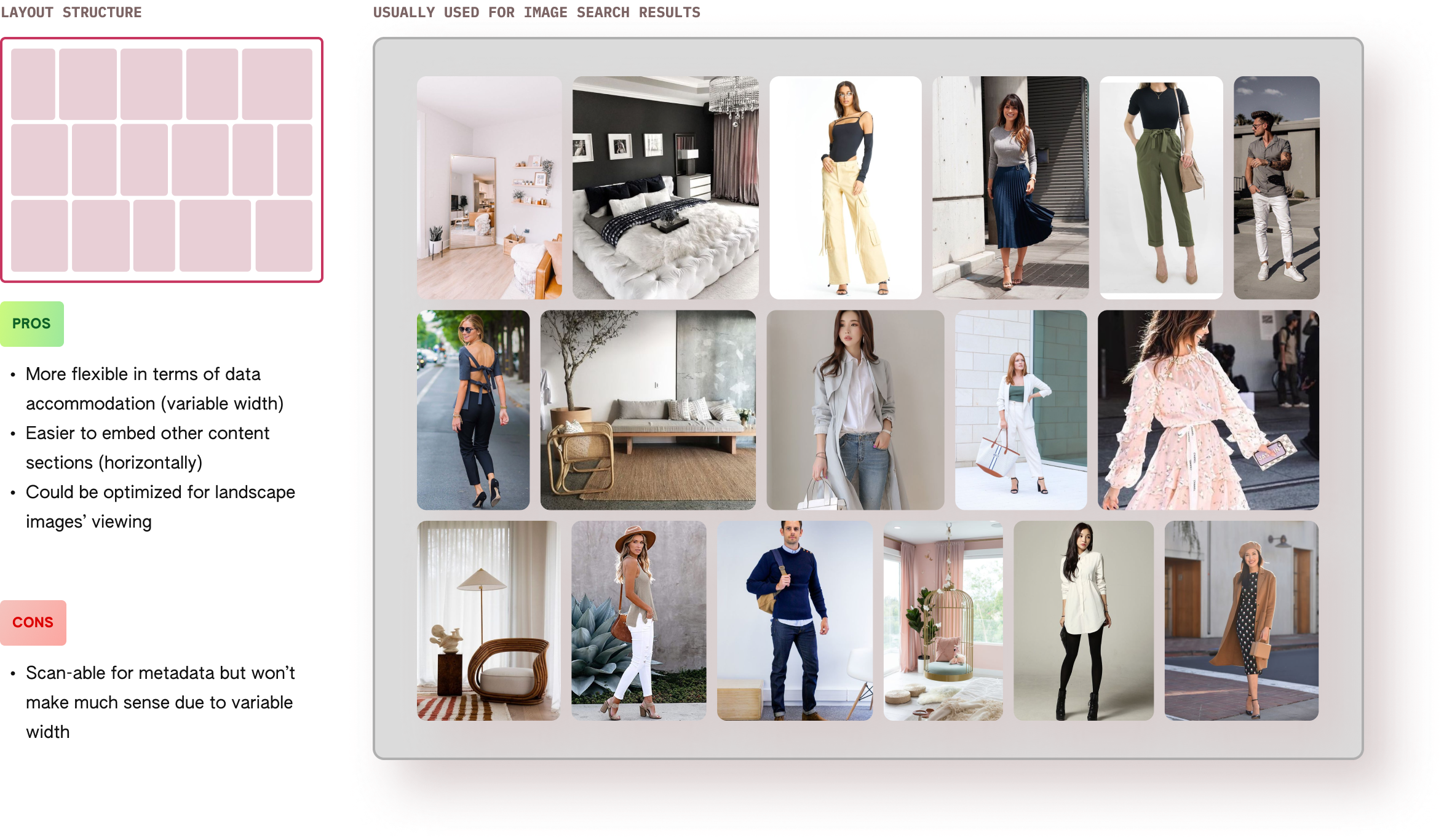 An important things to note here is that most of the images on Stylinity are of people showcasing looks and hence, naturally have a portrain orientation. This data helped in me make 2 decisions: