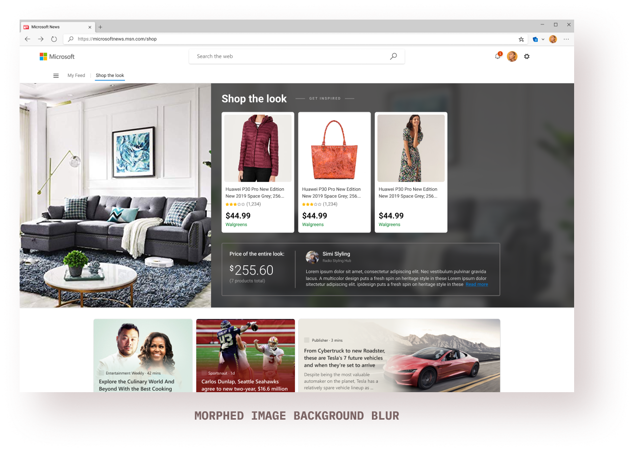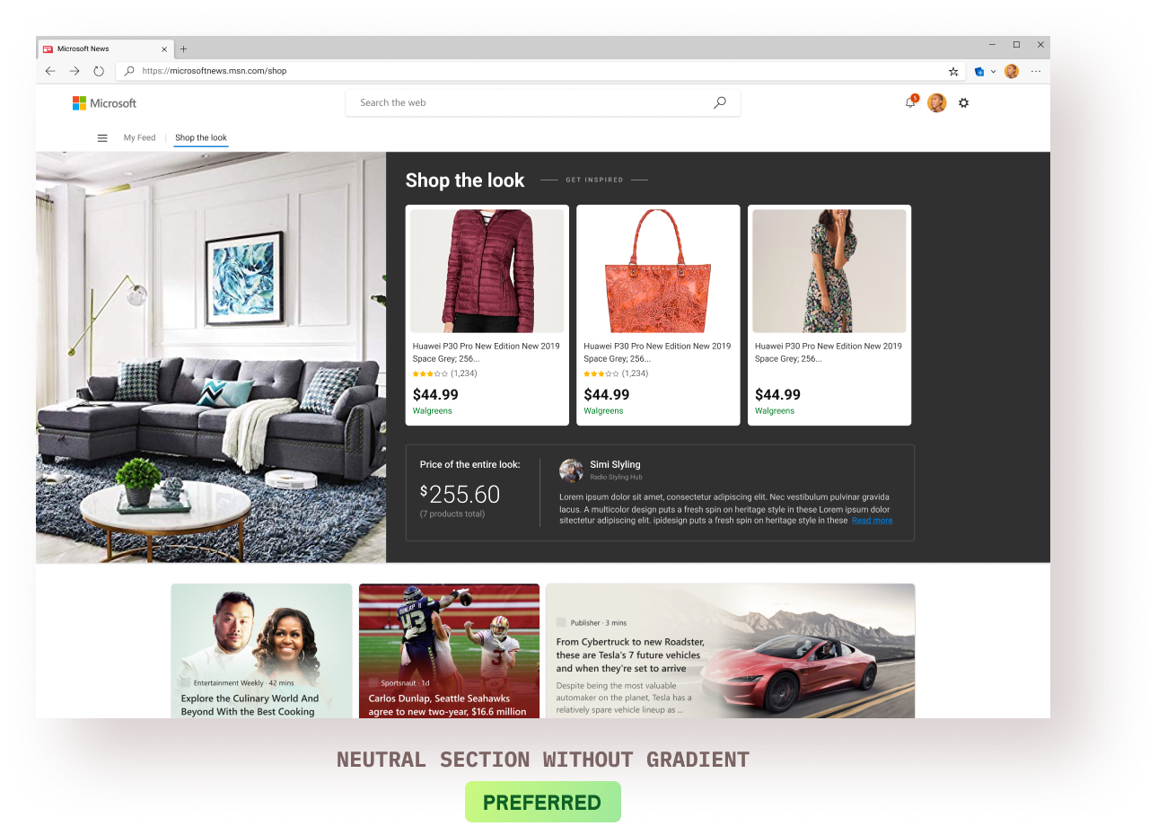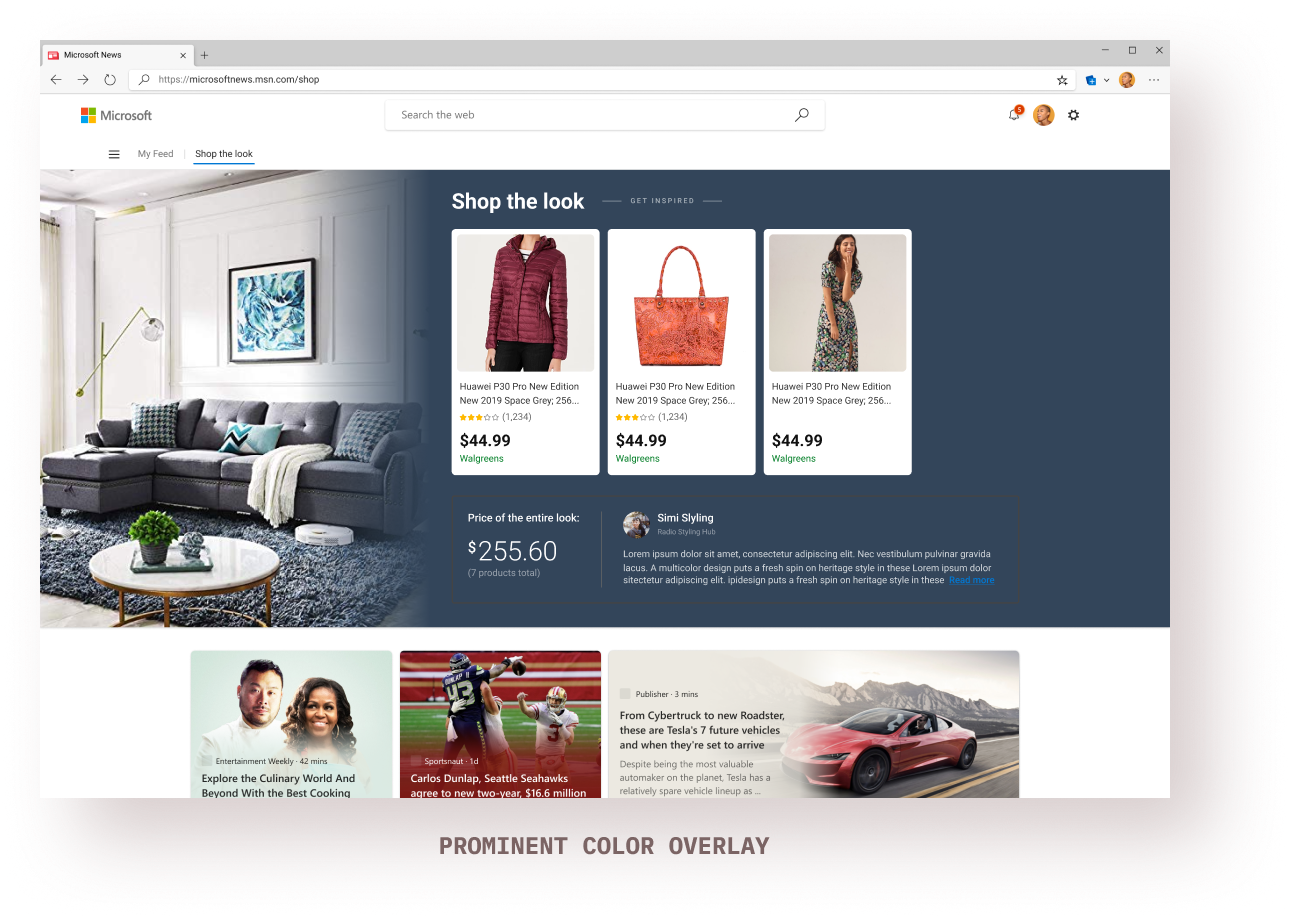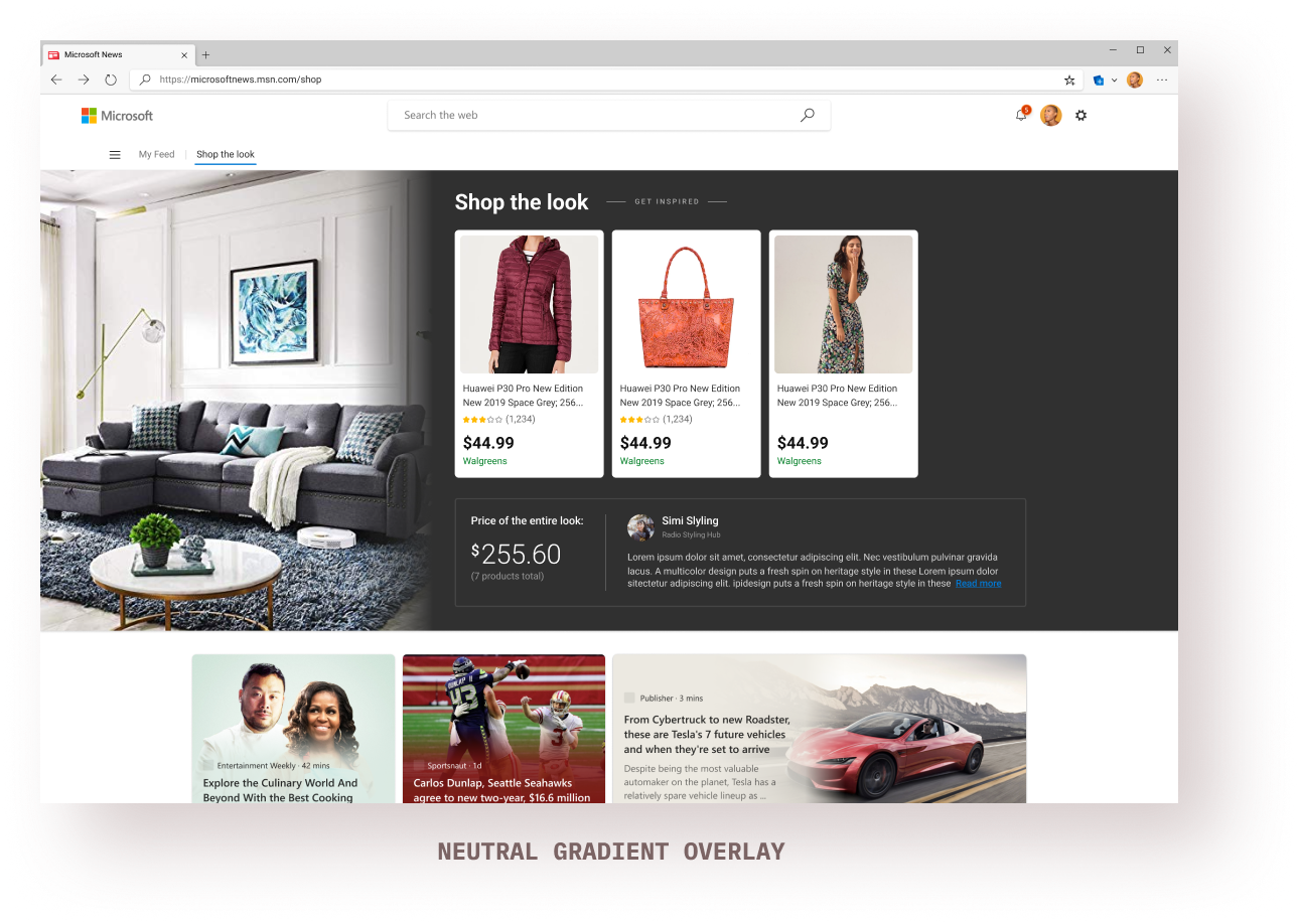 While the Shop the Look feed work was ongoing, there was a change in business direction for the product- the feed will be hosted on MSN first (with super-short turnaround time) and will be brought to Bing later on. This changed a lot of things and I tried to re-purpose the designs for MSN.