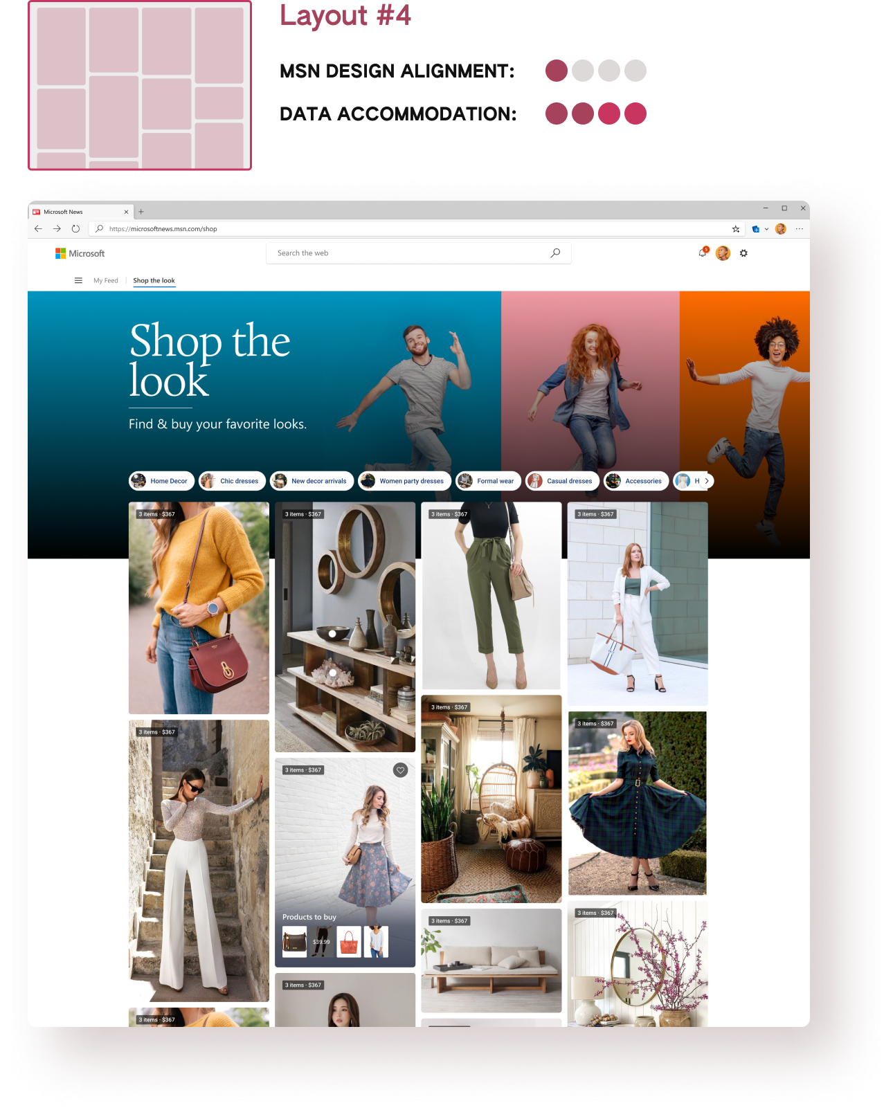 The MVP 'Shop the Look' feed was shown specifically to users who were interested in fashion/clothing/inspiration/looks on MSN and the engagement was a satisfactory 1%.