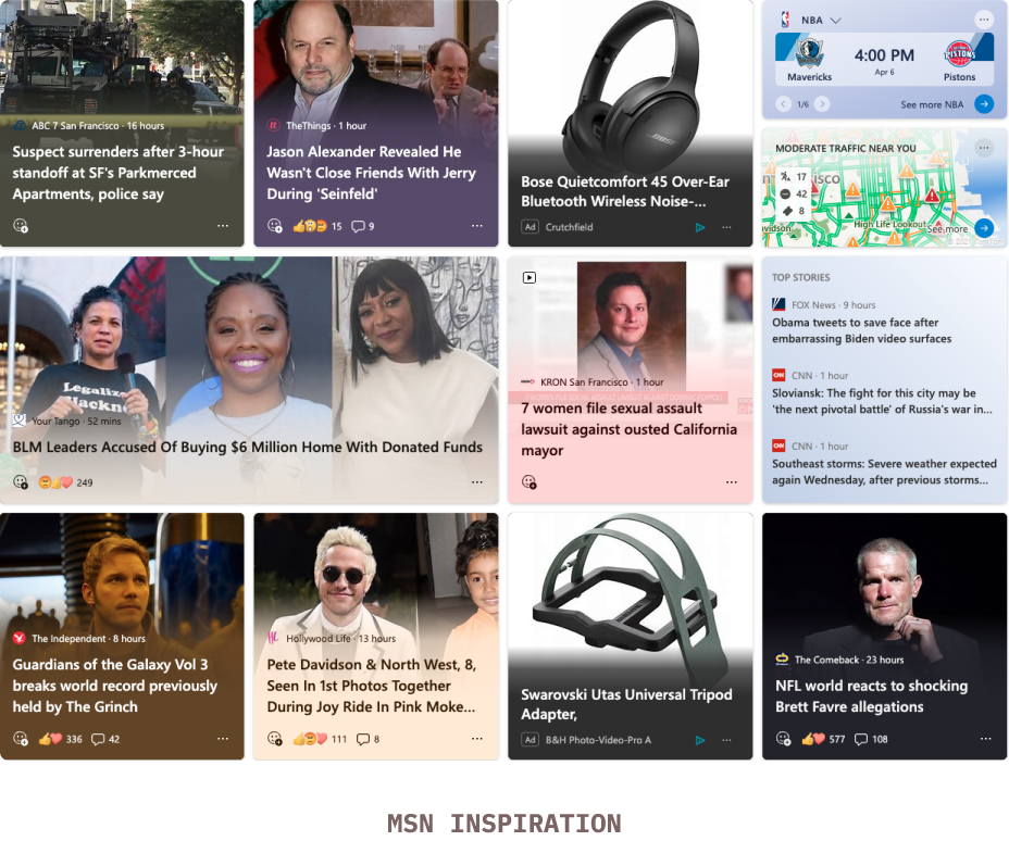 I studied the design system and visual language of MSN and tried re-constructing the Bing feed designs to fit within the MSN eco-system. I can’t say that was the best approach because I was mostly reverse-engineering the designs due to the time constraint.