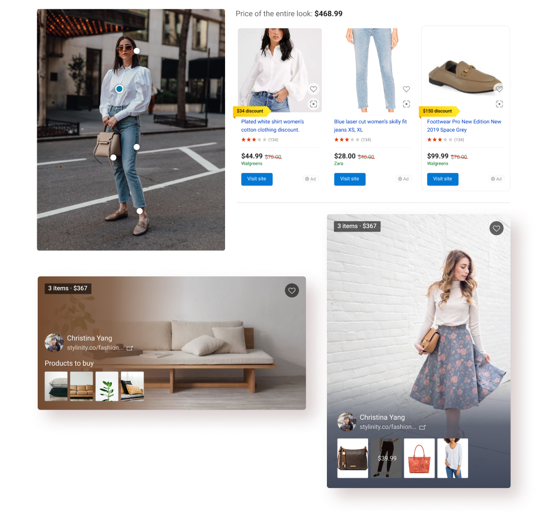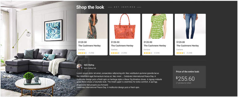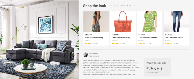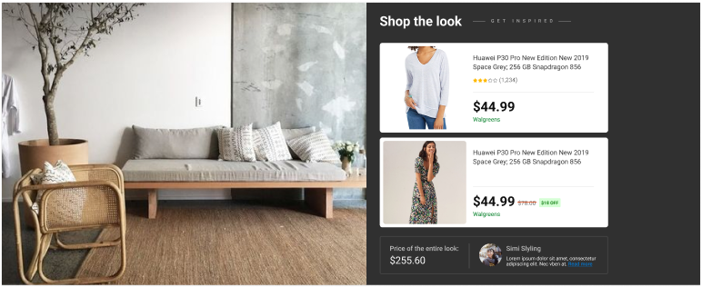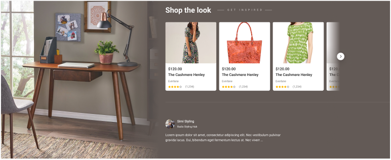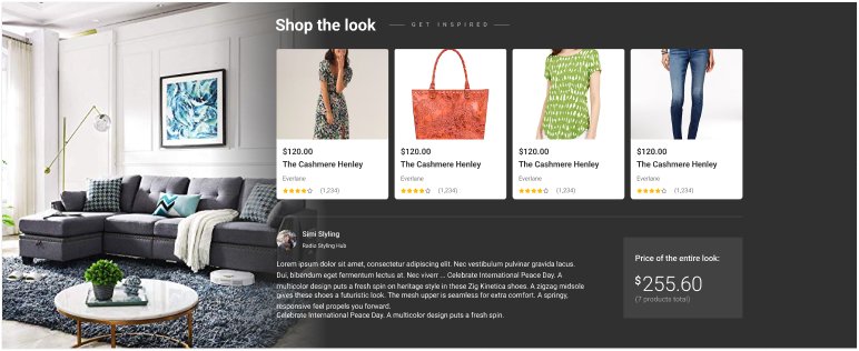 As the name suggests, the Shopping Feed (that I was working on) was meant to be an immersive, visually rich shopping experience with a major focus on ‘Shop the Look’ feature using which the users could buy the products shows as a part of a wardrobe/environment in the image. The team had partnership with a 3rd party provider to get the product and image data.