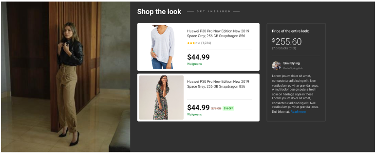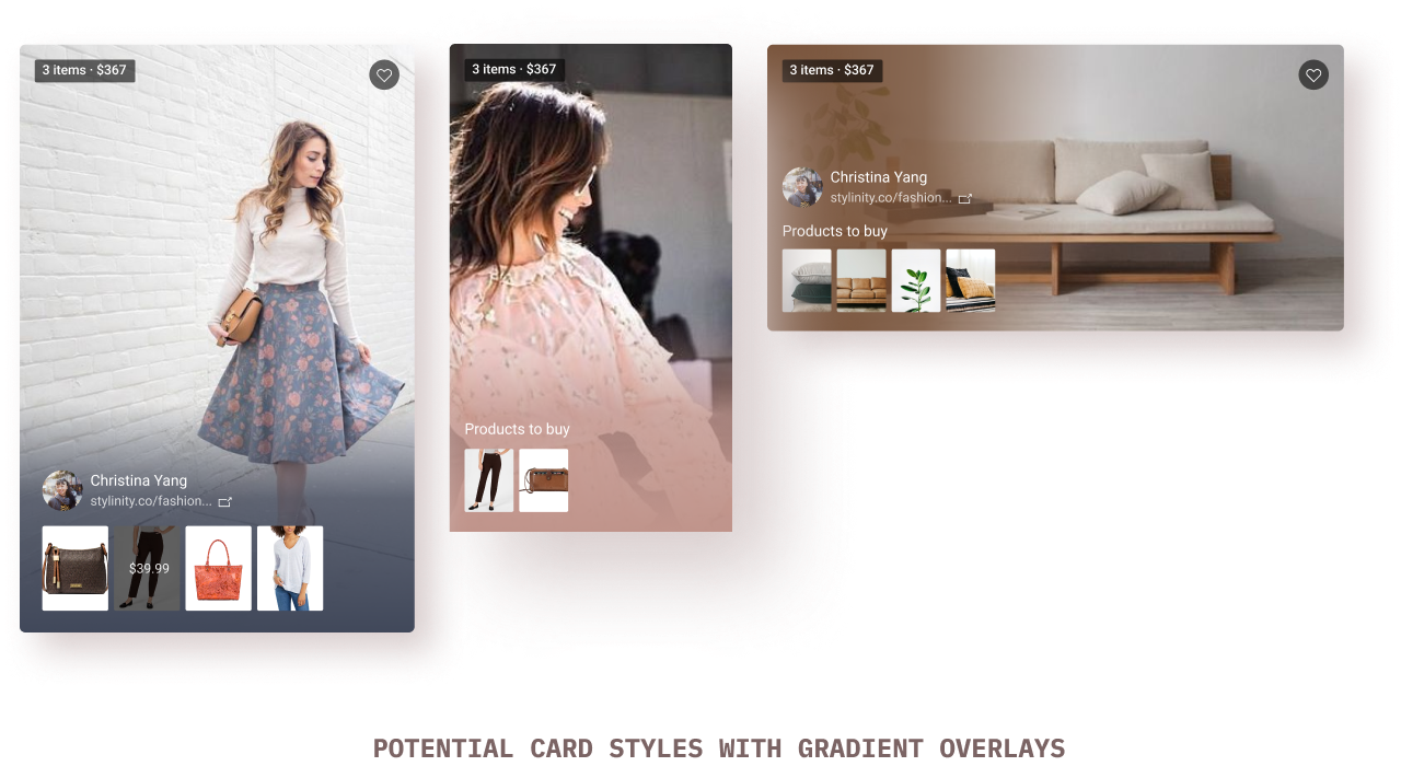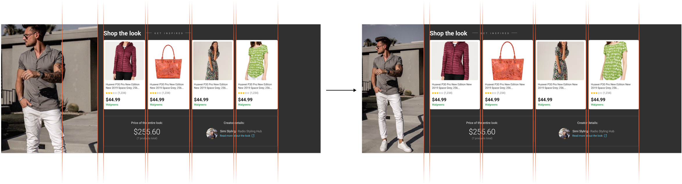 After finalizing the feed design, it was time to build the image details pane - a surface where users can browse the products associated with the selected ‘Look’.
